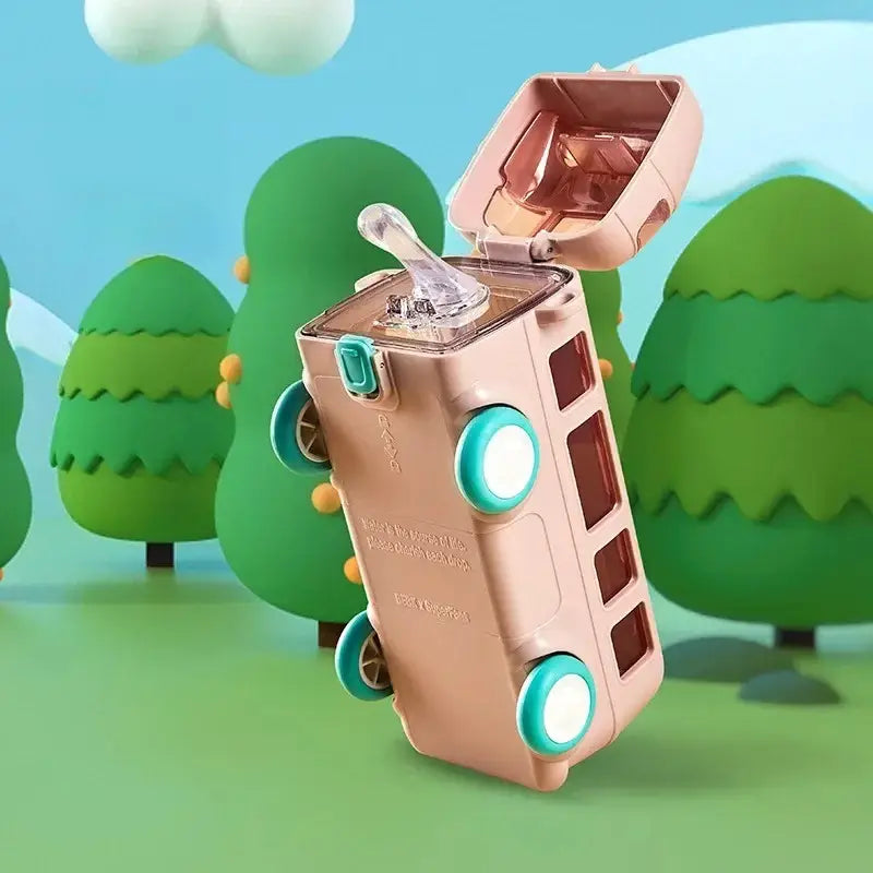 Bus Shape Water Bottle with Straw for Kids